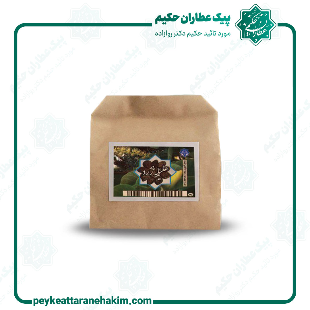ترکیبات : این نوع هلیله از سایر اقسام آن مصرف درمانی بیشتری دارد و بهترین نوع هلیله زرد خوب رسیده و هسته کوچک و گوشتی آن است .